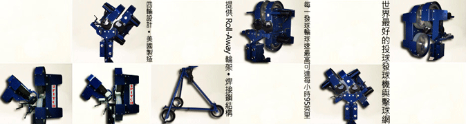 1.本機台為永磁直流馬達與固態電子裝置 2.在同一系統平台上,有兩個送球口之設計,有多種球 路之投擲方式(快速球、左(右)曲球、指叉球、滑球) 3.兩個發球輪模組為獨立操控,可分開控制發球速度、 高度、內外傾斜角度 4.發球間距可調整為紅線球或練習球使用 5.可在各別球路時間差內,任意調整球速快慢 6.可在同時間投擲高飛球與滾地球 7.每一發球輪機台,球速最高可達每小時95英里 8.快速球與變化球,分別有個別獨立電源控制開關設置