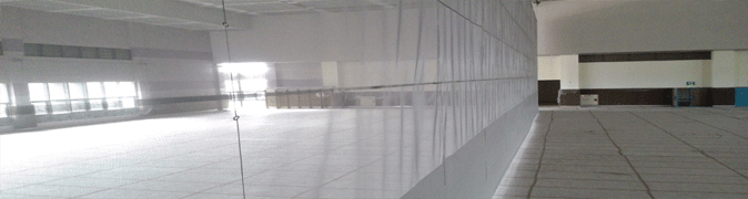 人造皮分隔幕:上層由網狀簍空之1000丹尼爾(Denier)之人造聚酯纖維網構成。下層雙層人造聚酯纖維布,纖維布間須以電熱熔結合,以確保聚酯纖維布之強度。皆須符合ASTM E 84防火等級A級與NFPA 701之防火標準或同級之規定。 1.控制開關需具備號碼鎖管控之功能 2.電動馬達具有UL 安全標誌合格