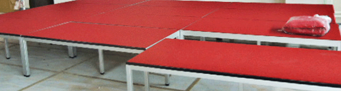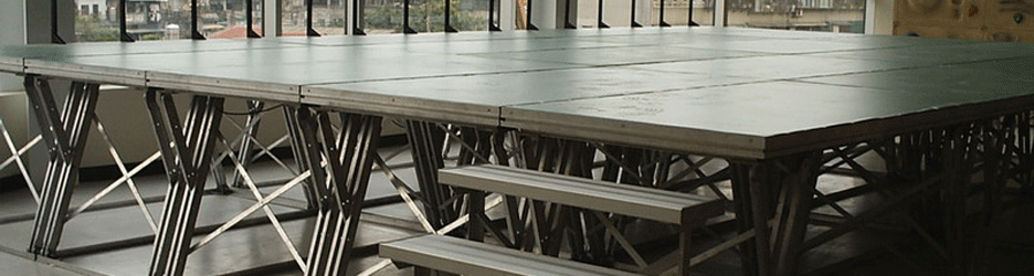 1.活動舞台每平方公尺活載重為 750 公斤以上。 2.每座活動舞台尺寸為2M×1M 。 3.活動舞台最上層木板厚度約為24mm 。 4.底部材質為鋁合金結構。 5.活動舞台升降高度:20cm、40cm、60cm、80cm、 100cm 。