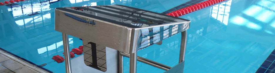 比賽時設置於池岸邊選手比賽開始入水使用。 安裝於池畔,高度69cm寬度50cm起跳板採FRP製傾斜 10°